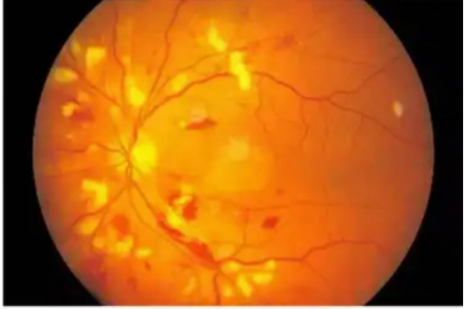 प्राथमिक जांच में मोतियाबिंद पाया गया साथ ही कार्निया भी क्षतिगृस्त हुआ जिनका समय रहते आपरेशन किया गया ,लेकिन नजर में ज्यादा परिवर्तन नहीं आया ,अन्य जांच OCT किया गया जिस जांच मे देखा गया की पर्दे में छेद हो चुका है।