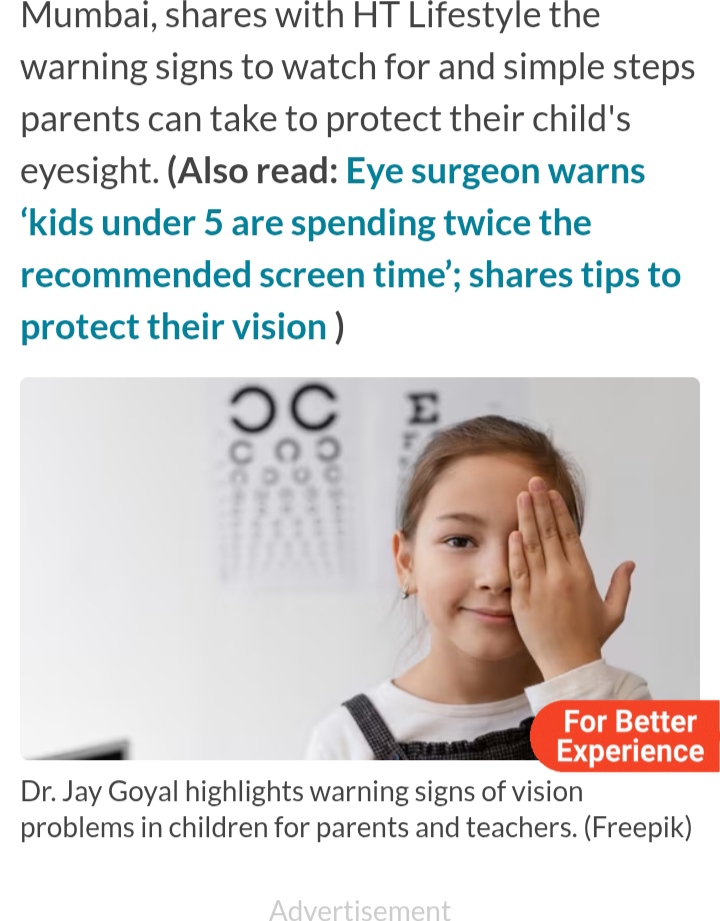 कभी कभी समस्याओं का समाधान सरल होता है। पर समय ओर जानकारी के अभाव में सही समाधान नही मिलता Take Care for your eyes