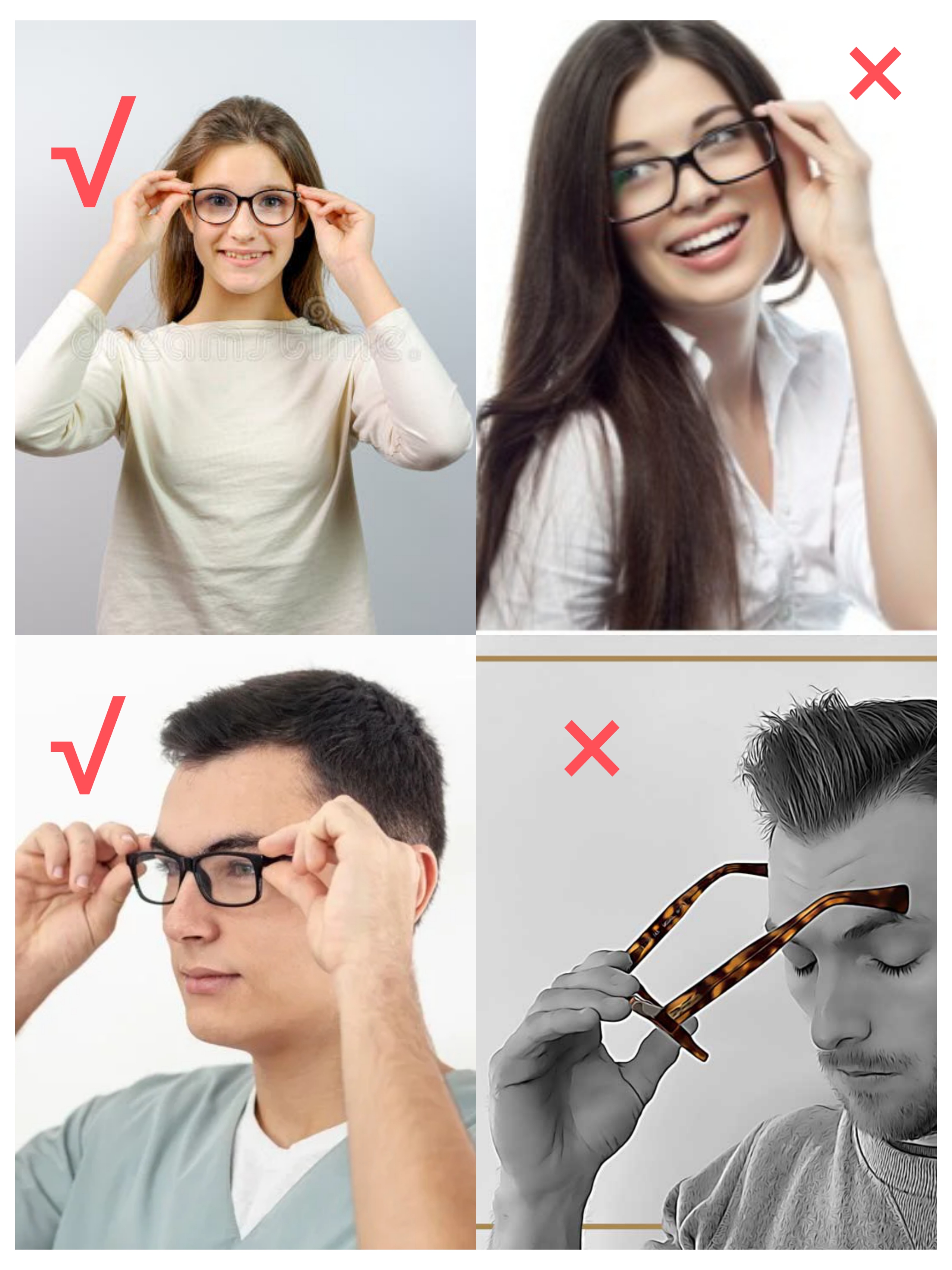 चश्मा छूने से पहले, अपने हाथों को साबुन और पानी से धो लें या सैनिटाइज़र का उपयोग करें।